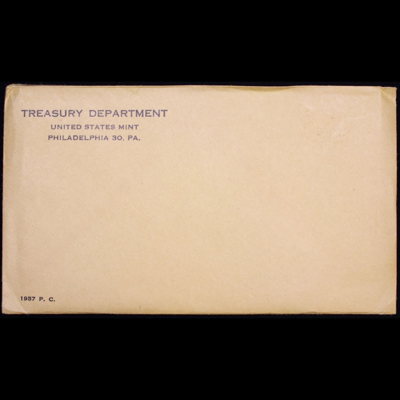 Original sealed 1957 United States Mint Proof Set. Up for Auction is an Unopened 1957 Proof Set In Original Envelope! The Proof set in this Envelope has never been reviewed or examined by anyone. Virtually every 1957 Proof Set has been looked at by Coin Experts who have identified potential PR69 DCAM Coins and had them slabbed. Those opened Proof Sets you find at coin shows or for sale individually have almost certainly been examined and reviewed., So, What COULD be in This Set, Well here are the 5 things that could be inside A Franklin 50c in PR69 DCAM Trending $37,500, a Washington 25c in PR69 DCAM Trending $5,250, a Roosevelt Dime in PR69 DCAM Trending $3,850, BUT That’s Just the Start, There also could be a Jefferson 5c in PR68 DCAM, TRENDING 8,500, BUT EVEN THAT IS JUST THE SIDESHOW! The REAL WINNER IN THIS LOTTERY BOX IS The Lincoln Penny, a 1957 PROOF Lincoln 1c in PR68 DCAM TRENDS $32,500 This could be one of the very last Sealed Envelopes in EXISTENCE. This “WONKA” Box could Contain Coins Worth $87,300 - Good Luck in Obtaining This Unopened 1957 Proof Set!!!