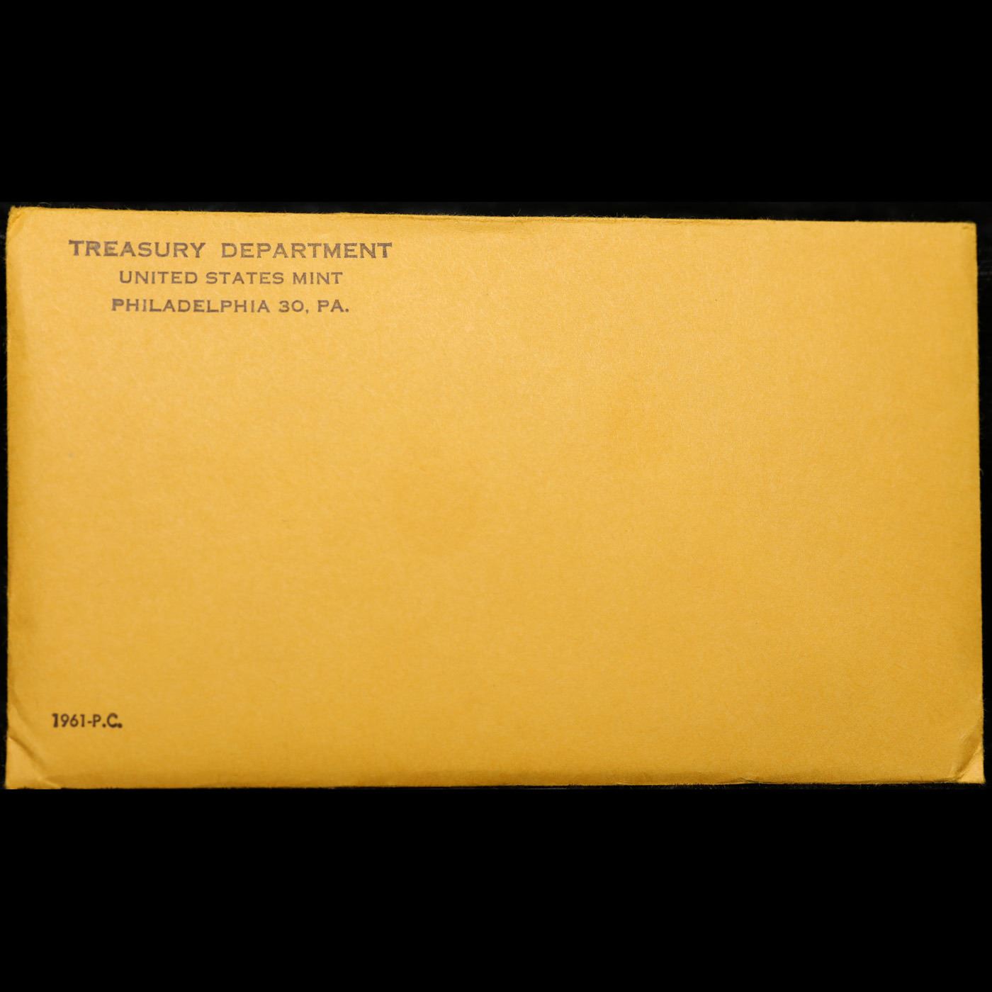 Original sealed 1961 United States Mint Proof Set! 5 Coins Inside!. Up for Auction is an Unopened 1961 Proof Set In Original Envelope! The Proof set in this Envelope has never been reviewed or examined by anyone. Virtually every 1961 Proof Set has been looked at by Coin Experts who have identified potential PR70 DCAM Coins and had them slabbed. Those opened Proof Sets you find at coin shows or for sale individually have almost certainly been examined and reviewed., So, What COULD be in This Set, Well here are the 5 things that could be inside A Franklin 50c in PR69 DCAM Trending $30,000, a Washington 25c in PR69 DCAM Trending $750, a Roosevelt Dime in PR70 DCAM Trending $5,500, BUT That’s Just the Start, There also could be a Jefferson 5c in PR69 DCAM, TRENDING $3,000, BUT EVEN THAT IS JUST THE SIDESHOW! The REAL WINNER IN THIS LOTTERY BOX IS The Lincoln Penny, a 1961 PROOF Lincoln 1c in Large Date PR69 DCAM TRENDS $4,750 This could be one of the very last Sealed Envelopes in EXISTENCE. This “WONKA” Box could Contain Coins Worth $47,000 - Good Luck in Obtaining This Unopened 1961 Proof Set!!!