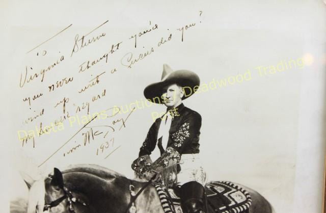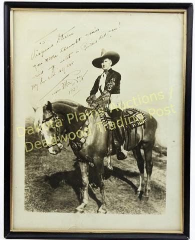 early Hollywood cowboy, 1891-1978, started in silent movies, beginning in 1925, his final in 1965, the photo dated 1937, shows McCoy in full cowboy gear, including his horse, 10"X13". Est. 125-200