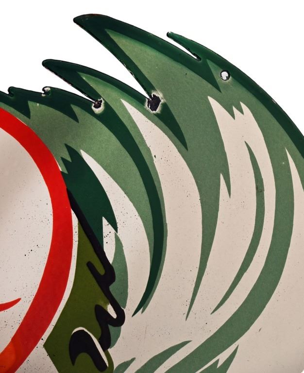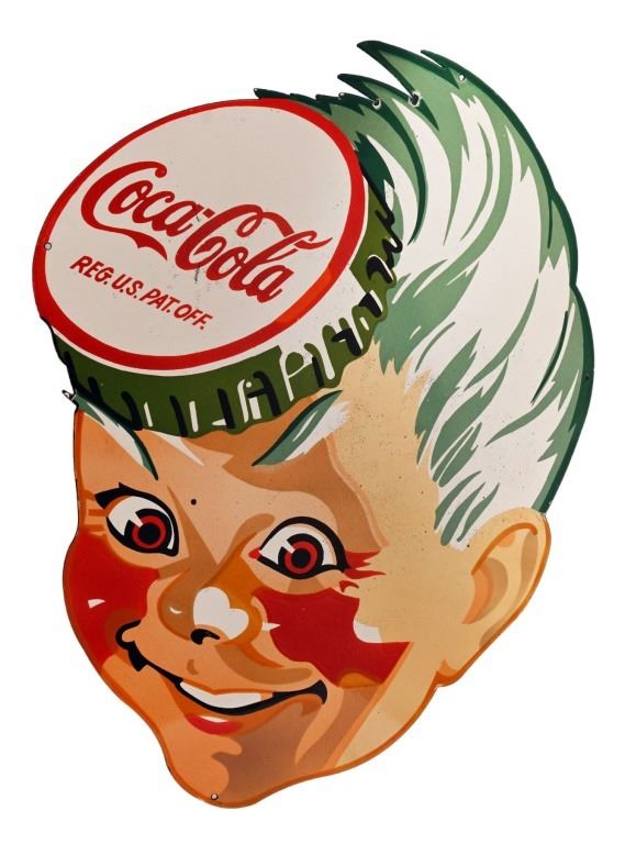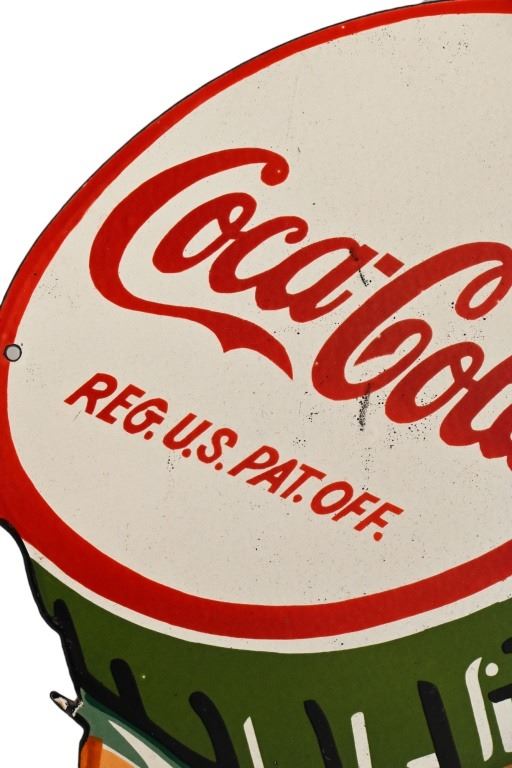Original Coca-Cola Die-Cut Porcelain Sign. Measures 29.5 x 39.5, Circa late 1940s-1950s.