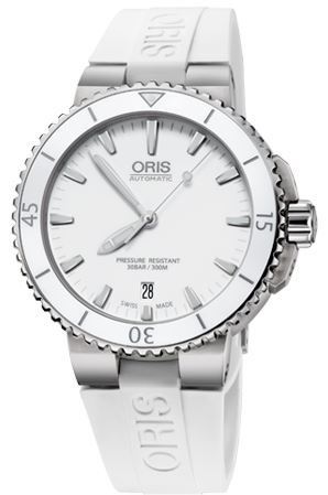 Model: 01 733 7676 4156-07 4 21 31 - CASE = [Material:Stainless Steel], [Case Diameter:40], [Bezel:Uni- Directional Rotating], [Case Back:Skeleton], [Water Resistant:30 Meters - 100 Feet], [Crystal:Scratch Resistant Sapphire], DIAL = [Color:White], MOVEMENT = [Type:Automatic Self Winding], [Crown:Screw Down], BAND = [Clasp:Folding Clasp], [Type:White Rubber], (Usually ships in 1 to 2 weeks.)