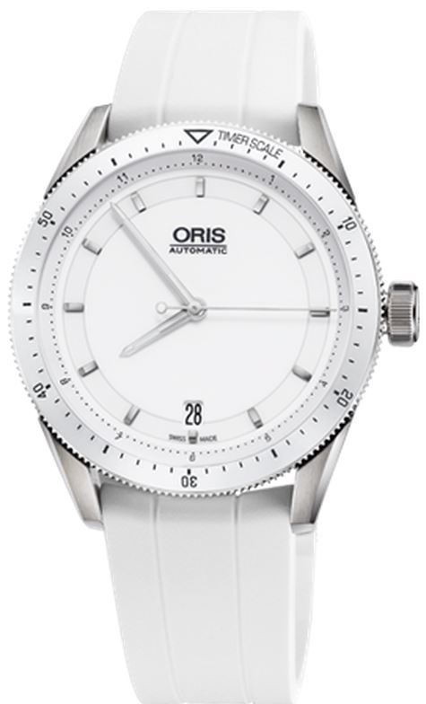 Model: 01 733 7671 4156-07 4 18 30FC - CASE = [Material:Stainless Steel], [Case Diameter:37], [Bezel:Uni-Directional Rotating], [Case Back:Skeleton], [Water Resistant:100 Meters - 330 Feet], [Crystal:Scratch Resistant Sapphire], DIAL = [Color:White], MOVEMENT = [Type:Automatic Winding Date], [Crown:Screw Down], BAND = [Clasp:Folding Clasp], [Type:White Rubber], (Usually ships in 1 to 2 weeks.)