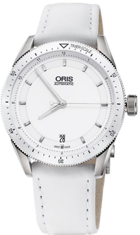 Model: 01 733 7671 4156-07 5 18 40FC - CASE = [Material:Stainless Steel], [Case Diameter:37], [Bezel:Uni-Directional Rotating], [Case Back:Skeleton], [Water Resistant:100 Meters - 330 Feet], [Crystal:Scratch Resistant Sapphire], DIAL = [Color:White], MOVEMENT = [Type:Automatic Winding Date], [Crown:Screw Down], BAND = [Clasp:Folding Clasp], [Type:White Leather], (Usually ships in 1 to 2 weeks.)