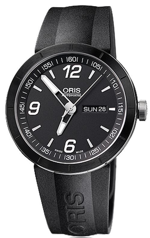 Model: 01 735 7651 4174-07 4 25 06 - CASE = [Material:Stainless Steel Black Plated], [Case Diameter:43], [Bezel:Fixed], [Case Back:Skeleton], [Water Resistant:100 Meters - 330 Feet], [Crystal:Scratch Resistant Sapphire], DIAL = [Color:Black], MOVEMENT = [Type:Automatic Winding Day Date], [Crown:Screw Down], BAND = [Clasp:Folding Clasp], [Type:Black Rubber], (Usually ships in 1 to 2 weeks.)
