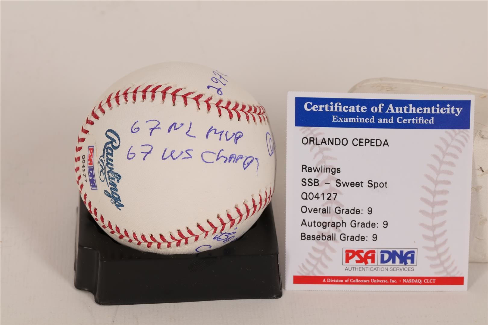 One Orlando Cepeda Autographed Baseball With Stats. Comes with Certificate of Authenticity.