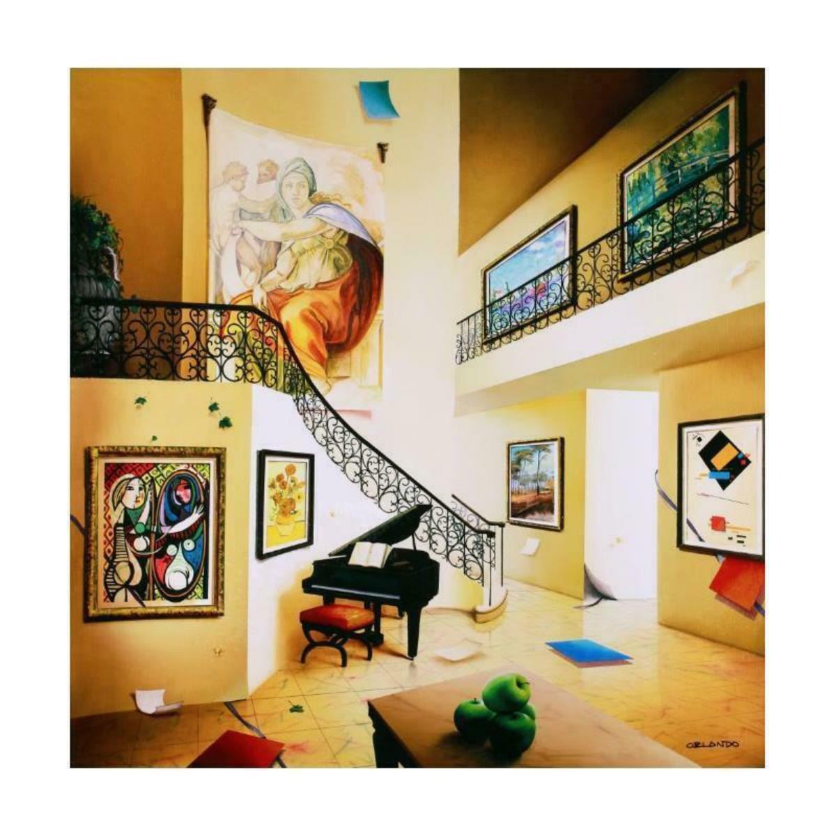 Orlando Quevedo, "Piano's Corner" Limited Edition on Canvas, Numbered and Hand Signed with Certifica