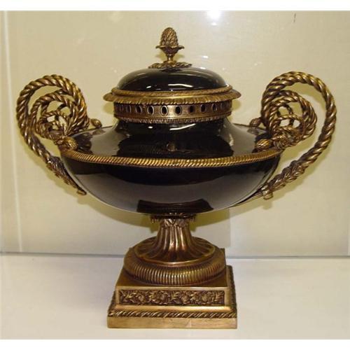 <tr><td>Title:Ormolu Bronze Black Porcelain Centerpiece Vase</td></tr>