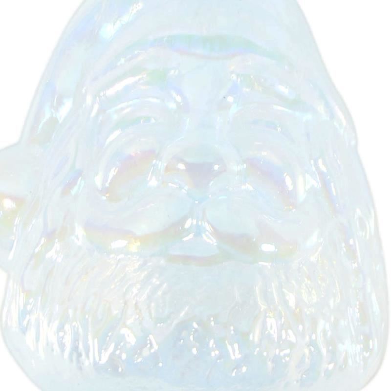 Ornament (Santa White) by Glass Eye Studio. "Ornament (Santa White)" is a hand blown glass ornament (second) from Glass Eye Studios. This piece contains ash from the 1980 volcanic eruption of Mount St. Helens. As each piece is individually handcrafted, the pattern in the glass may vary slightly from the image shown. "Second" means very slightly imperfect, but still great quality. Measures approx. 3" x 3".