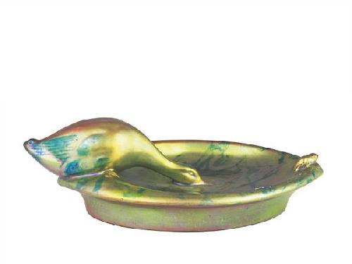 White earthenware, green eosin glaze. Marked: pressed number: 8737. (1912 year), stamped mark. Zsolnay, Pécs, circa 1930 Length: 20 cm