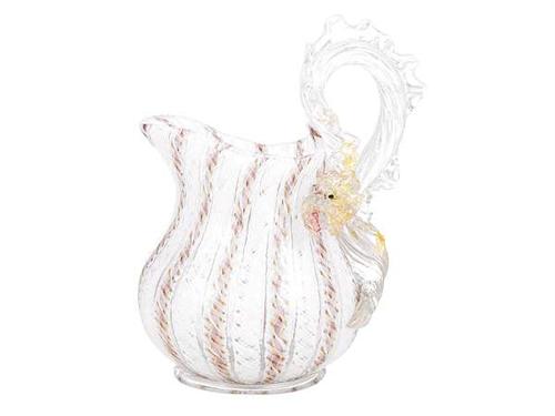 Blown, tintless glass, thread decoration. The handle is a stylised dragon. Minor chips. Murano, late 19th century. Size: 14.5 cm