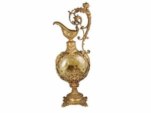 Blown, green glass, historical brass mounting. German, circa 1880 Size: 46 cm