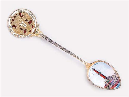 Silver, cast, laurel leaf decoration on the terminal, in the bowl there is painted enamelled decoration depicting a monument in Genoa, enamelled coin form end, circa 1900, gross weight: 17.3 g, in good condition.