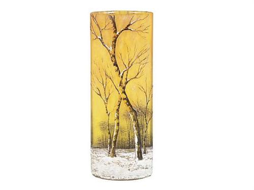 Blown and cut layered glass. Acid treated, enamel painting depicting a wood in winter. Marked on the bottom: Daum Nancy and the double cross of Lotharingia, circa 1900 Size: 17.5 cm