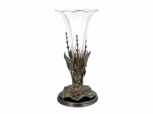 Blown and cut tintless glass, silver-plated metal mountings. Marked: Berndorf, circa 1900. Size: 35 cm