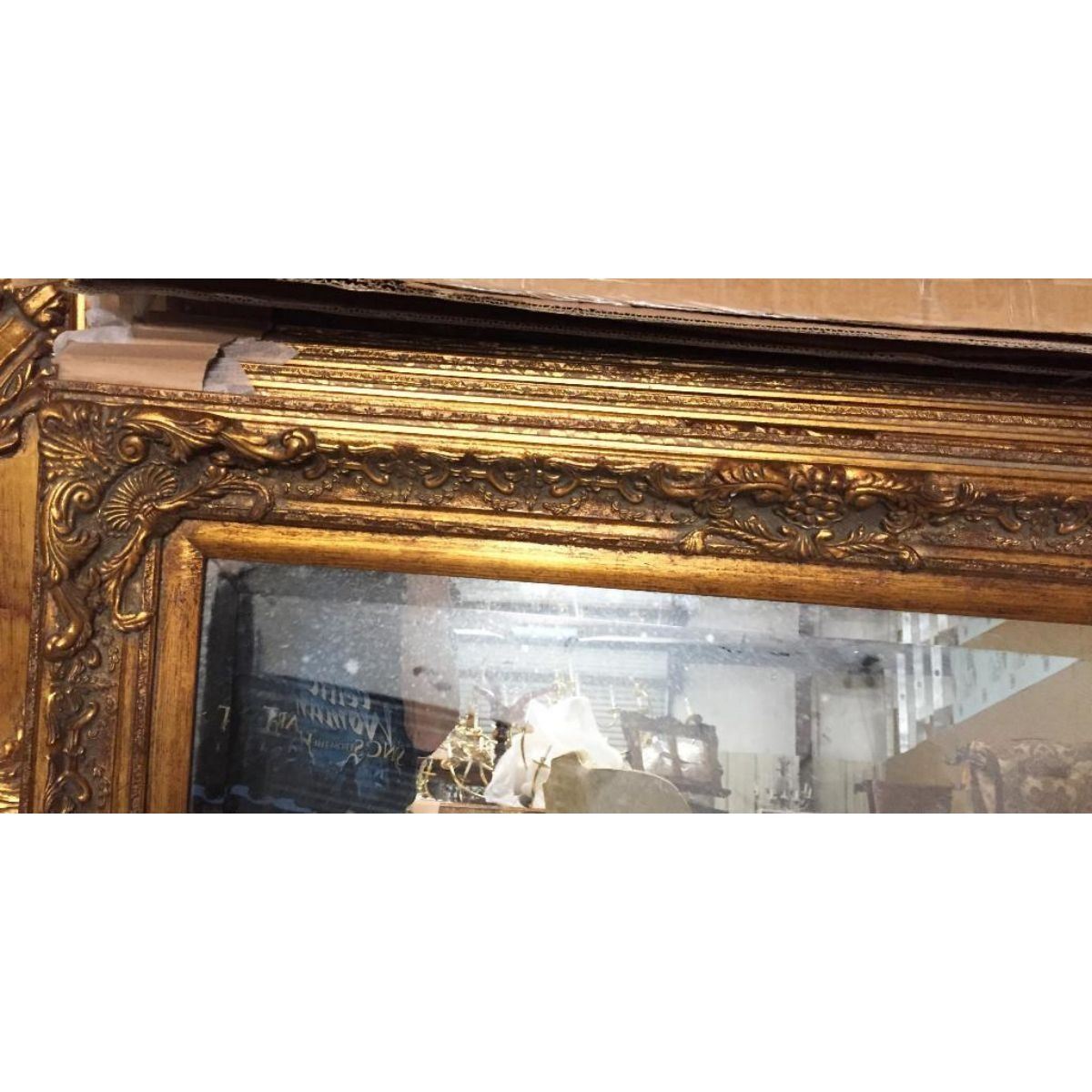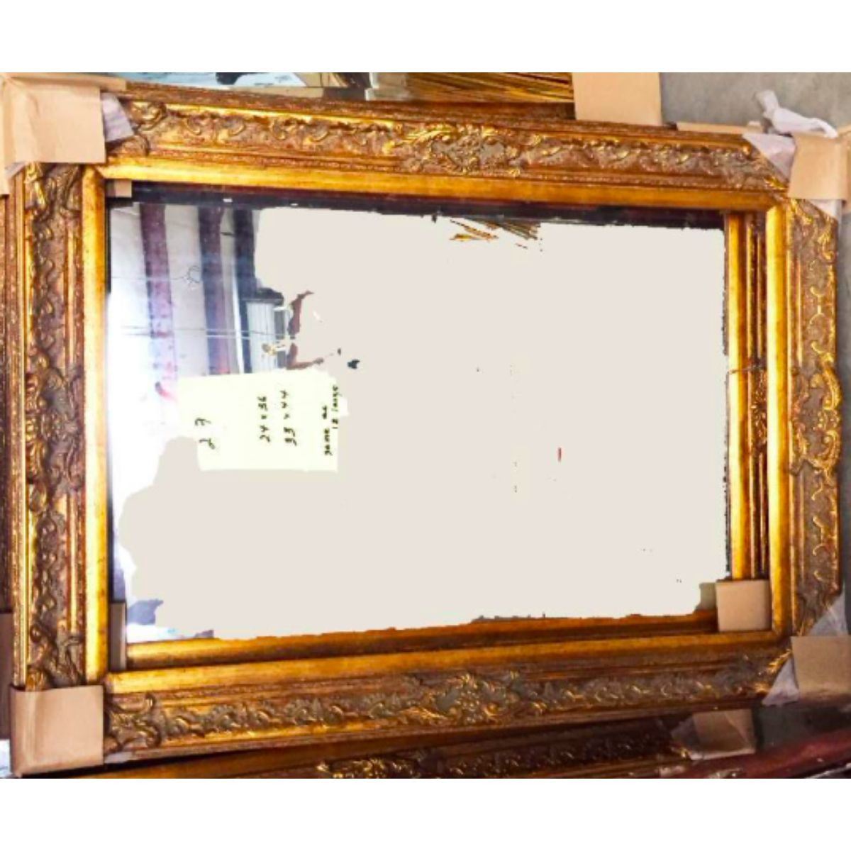 Ornate, carved gilt over solid wood frame ( overall 33"x44" ) set with 24" X 36" beveled mirror glass. Large hanging hooks attached to reverse. Neoclassical style, black & gold gilt octagon frame ( 35" X 46" ) set with 30" X 40" beveled mirror. Can be hung both vertically & horizontally. **** this is a solid wood, heavyweight item, requiring special pick up/ delivery arrangements. Â