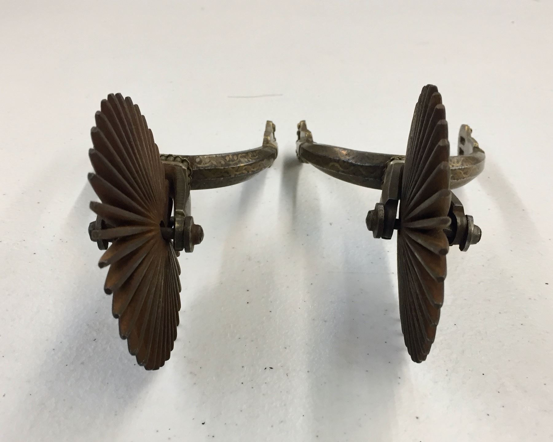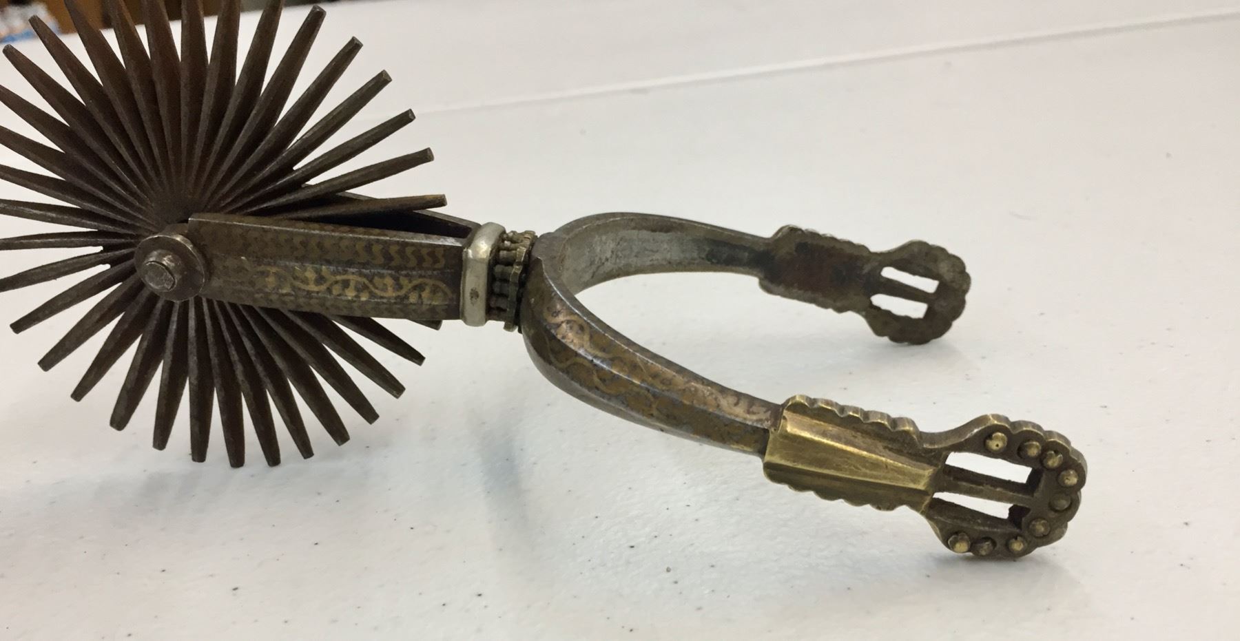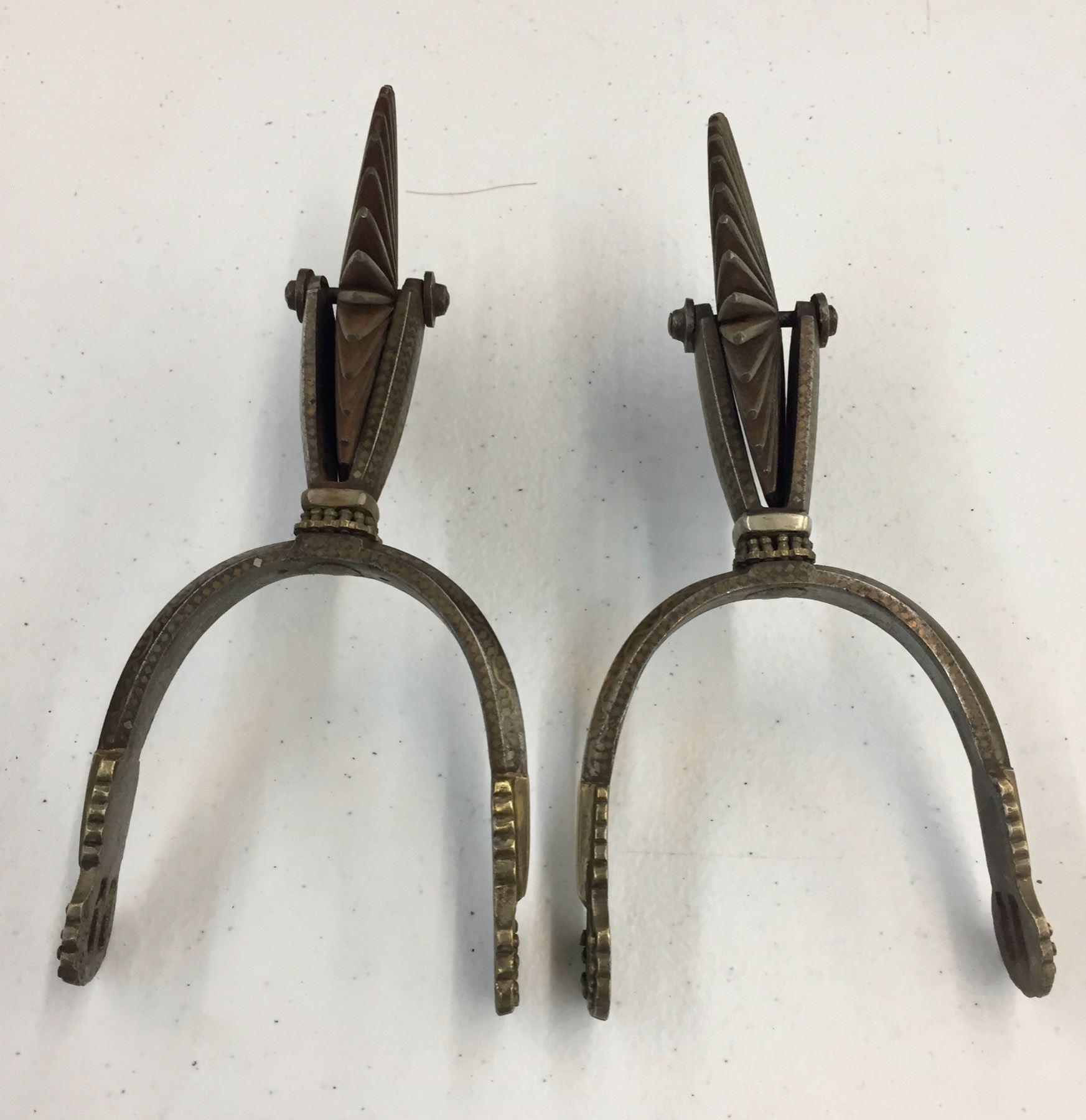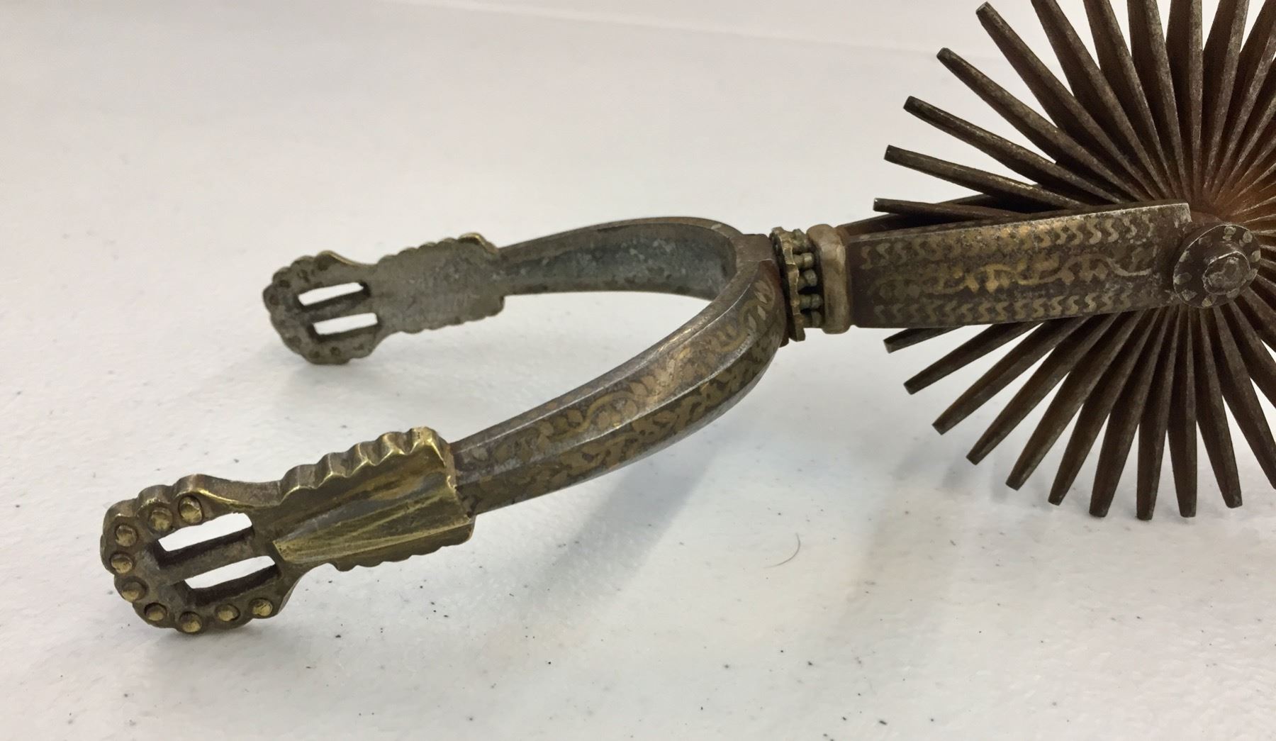 Description: Offered for sale in this lot is an ornate pair of Chilean spurs. This is a fancy pair of spurs with large rowels. Maker: Unknown. Approx. Age: Vintage. Size: 3†heel and 4†shank. Condition: Good for its age, normal wear expected. Please look closely at the pictures - they are an important part of our description. Shipping: There will be a $7 handling / packaging fee for shipping this lot. The actual cost of postage will be added on top of that.