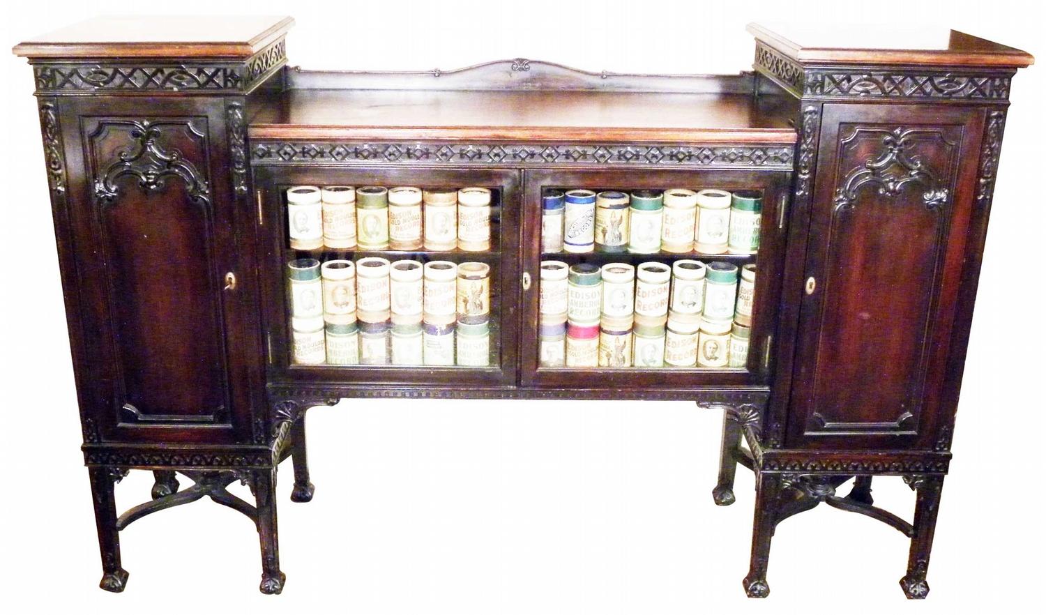 Ornate Mahogany Server. Perfect display cabinet for Musicbox and Phonograph plus storage for records/cylinders. Excellent original condition. 72 X 46 X 17 1/2 inches.