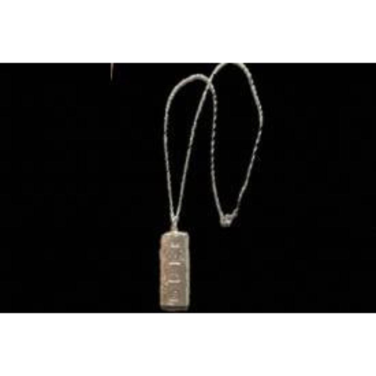 Ornately engraved sterling silver ingot, bearing a full set of English hallmarks including; maker's mark "ZJ" Zimmerman ( 1974-1980 ), anchor symbol for Birmingham England Assay Office, "lion passant" forsterling silver, & a capitol letter " E" for the year 1979. Ornate swirls & foliage design to both front & back & edges. approx 5/8" W X 2" L. 16" sterling chain. 28grams.