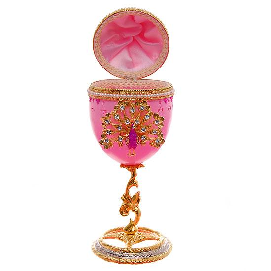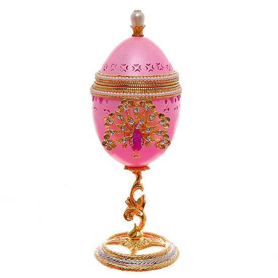 Excellent museum quality Faberge style; ornately hand-decorated with crystal; 24k gold plated adornments; silk lined; 6.5"; $1495 retail