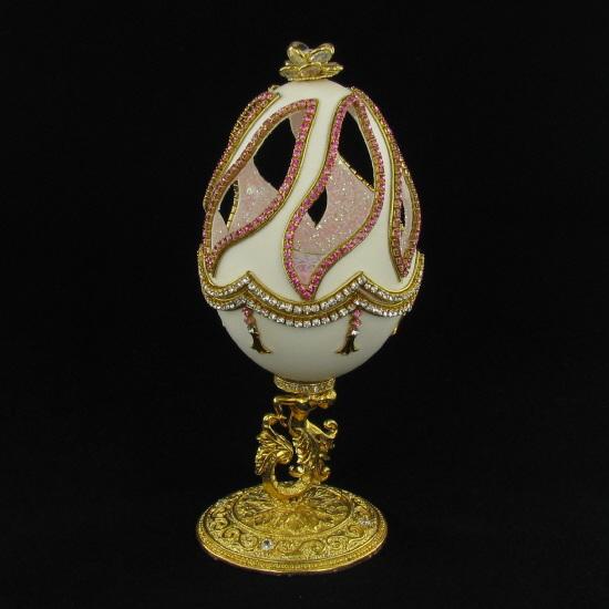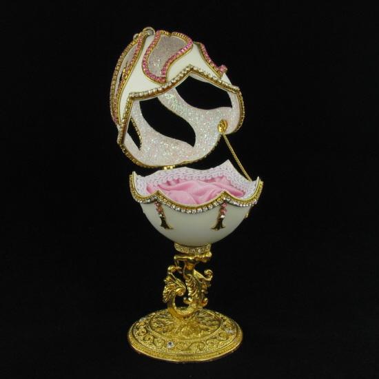 Excellent museum quality Faberge style; ornately hand-decorated with crystal; 24k gold plated adornments; silk lined; 4.5"; $1495 retail