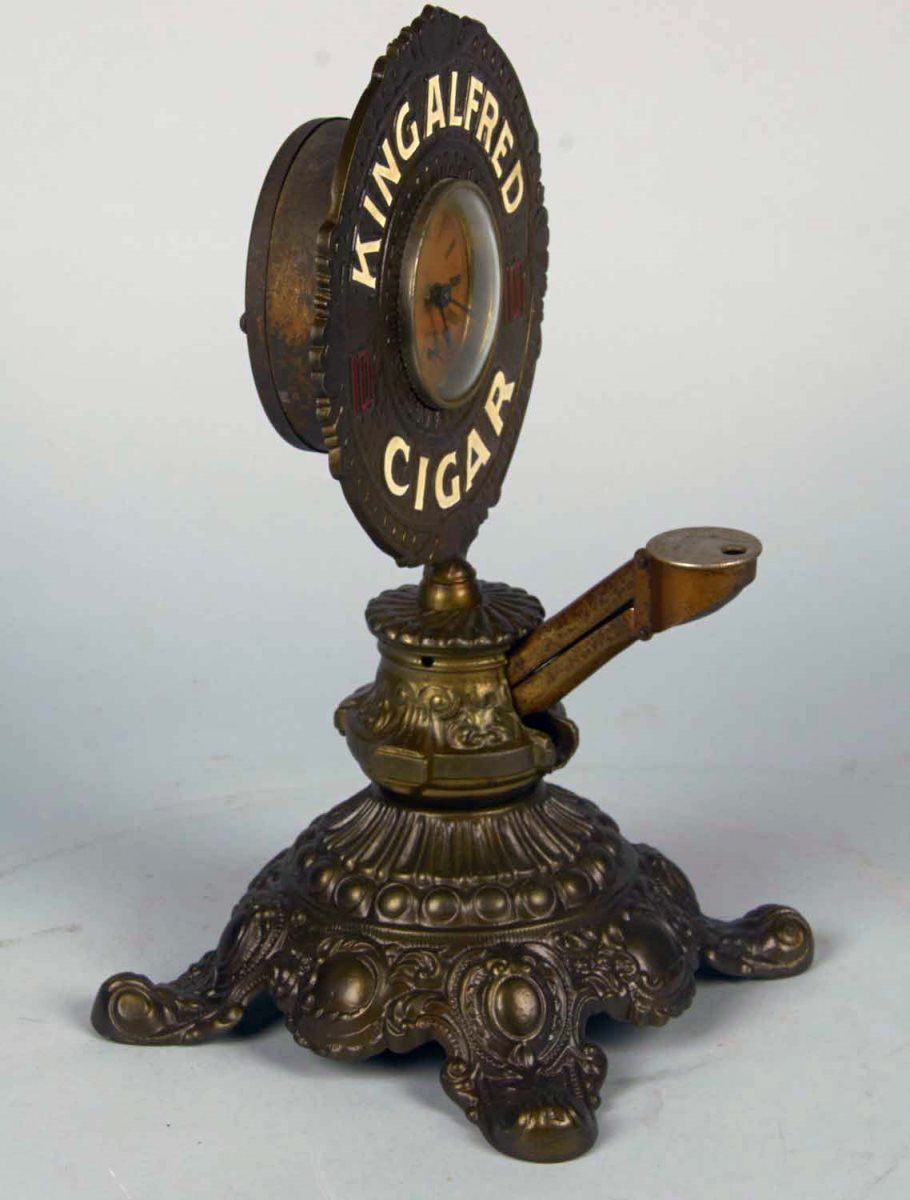 w/cigar cutter, Roman numeral face w/seconds subdial, Brunhoff Condition Excellent Size 13.5" x 7.5" x 7.5"
