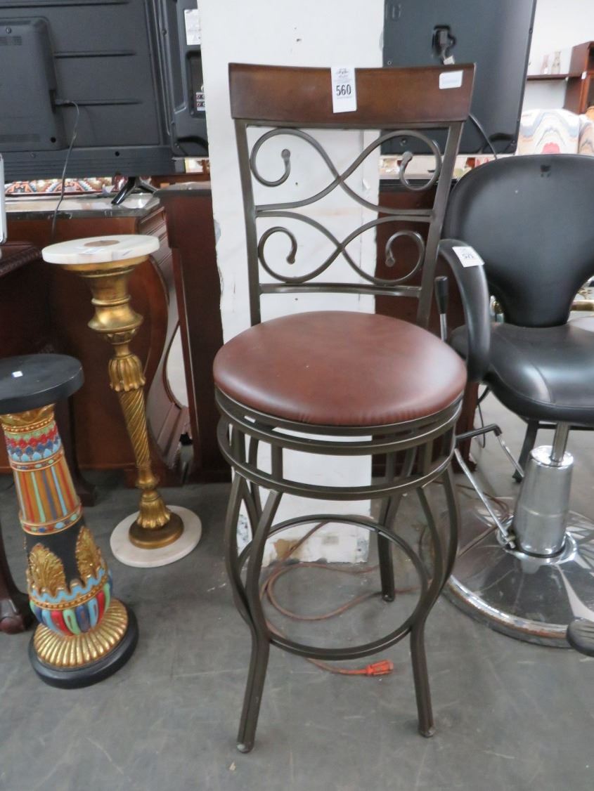 Ornate Padded Swivel Bar Stool w/Back