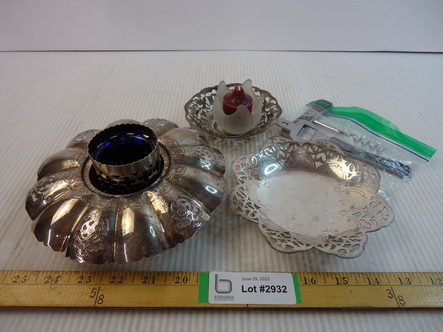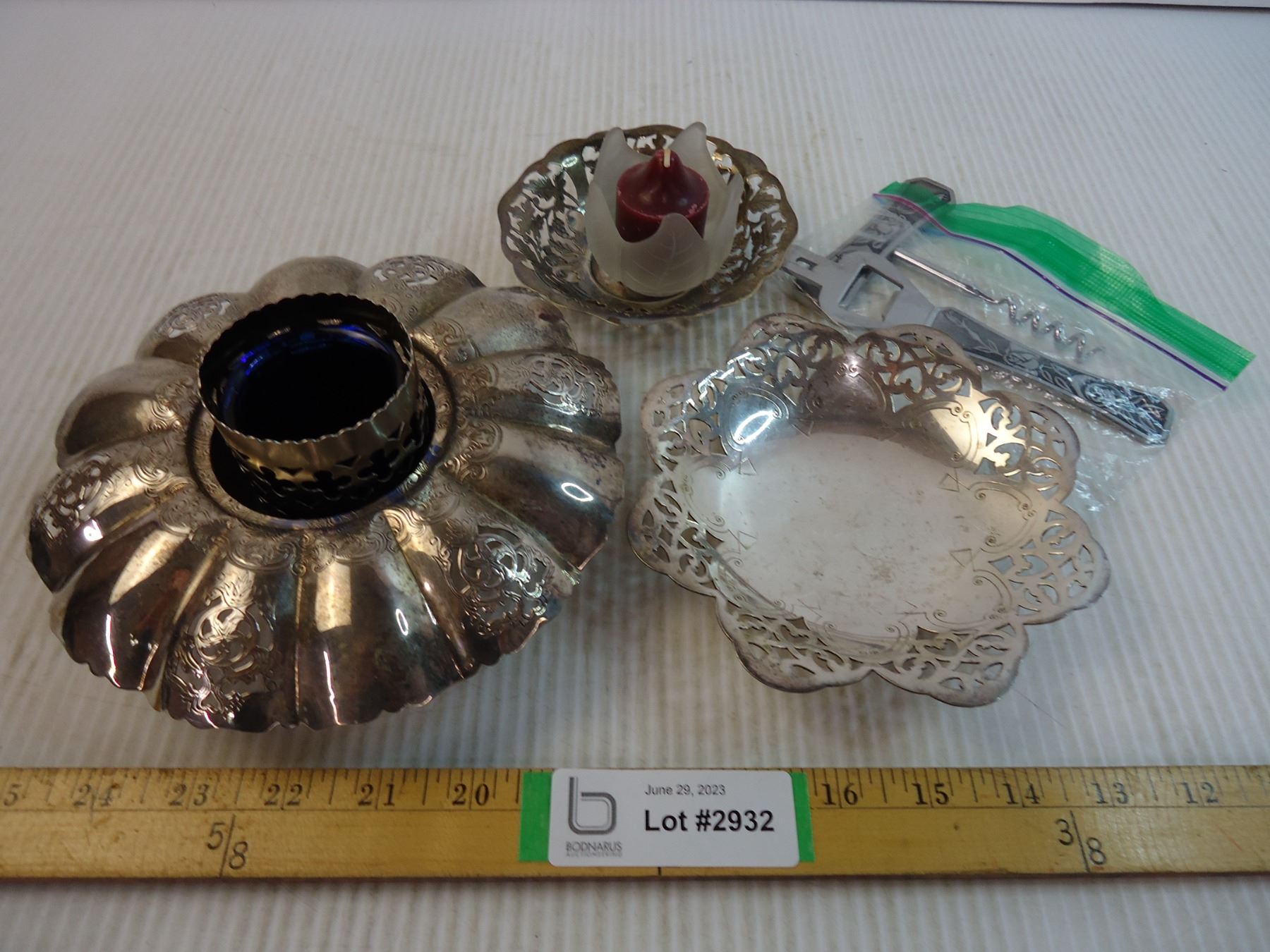 Ornate Silver Plated Lot/Bottle Opener&Corkscrew/Partylite Tulip Candle Holder&Votive