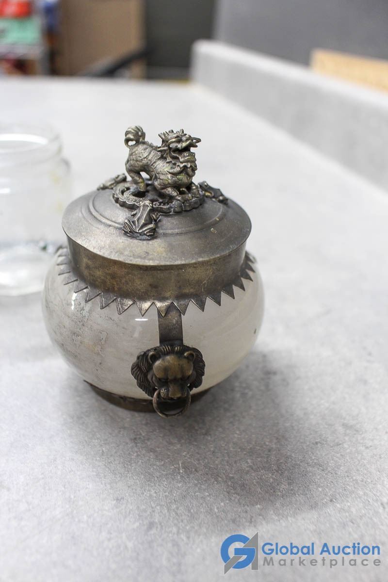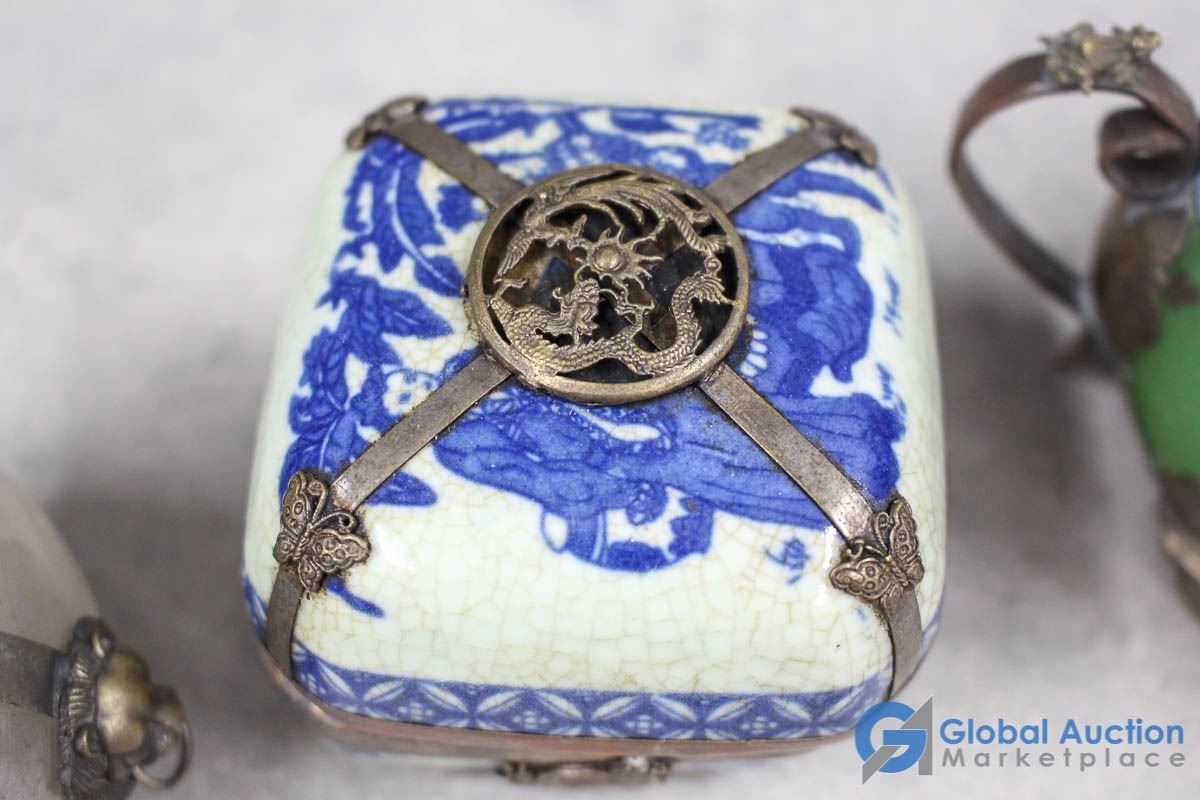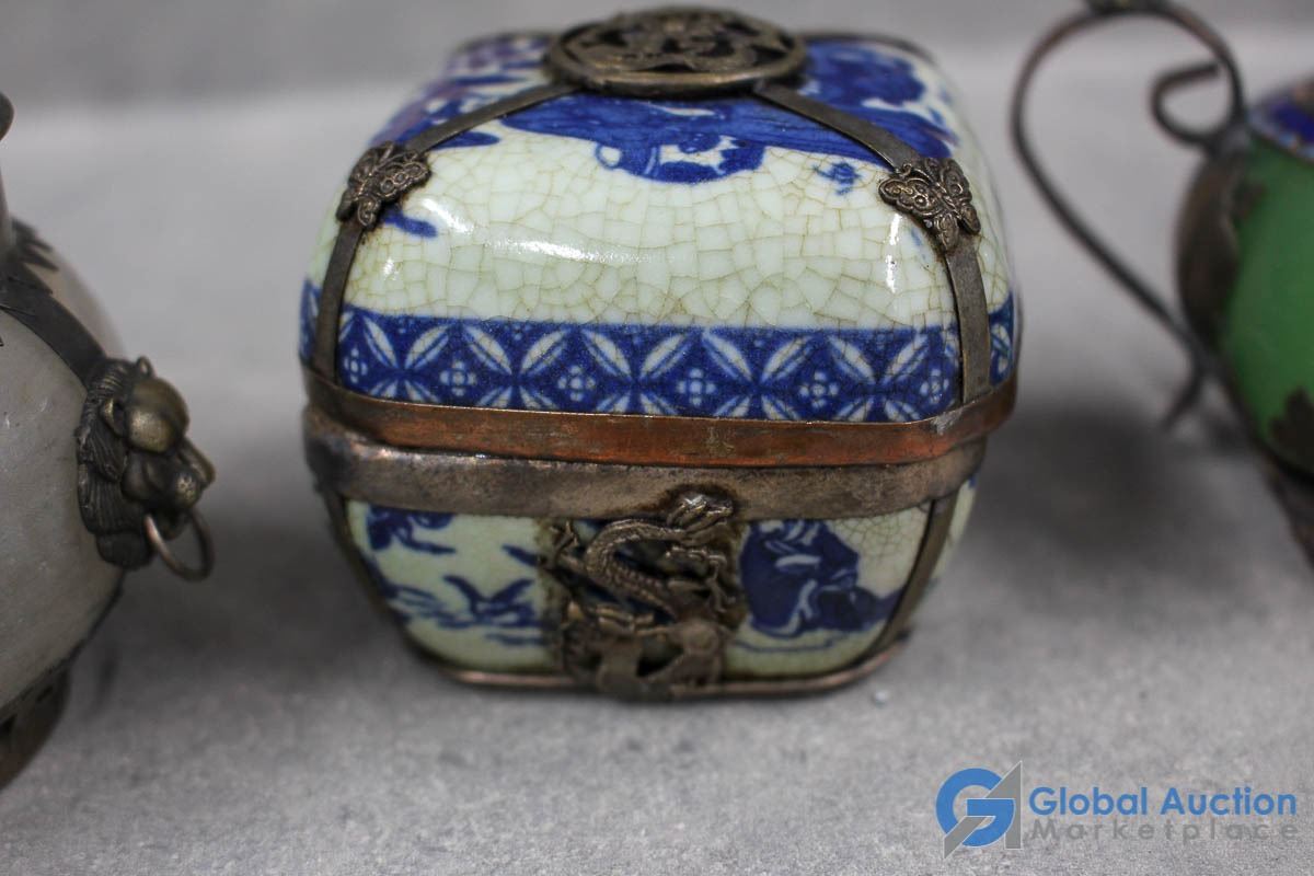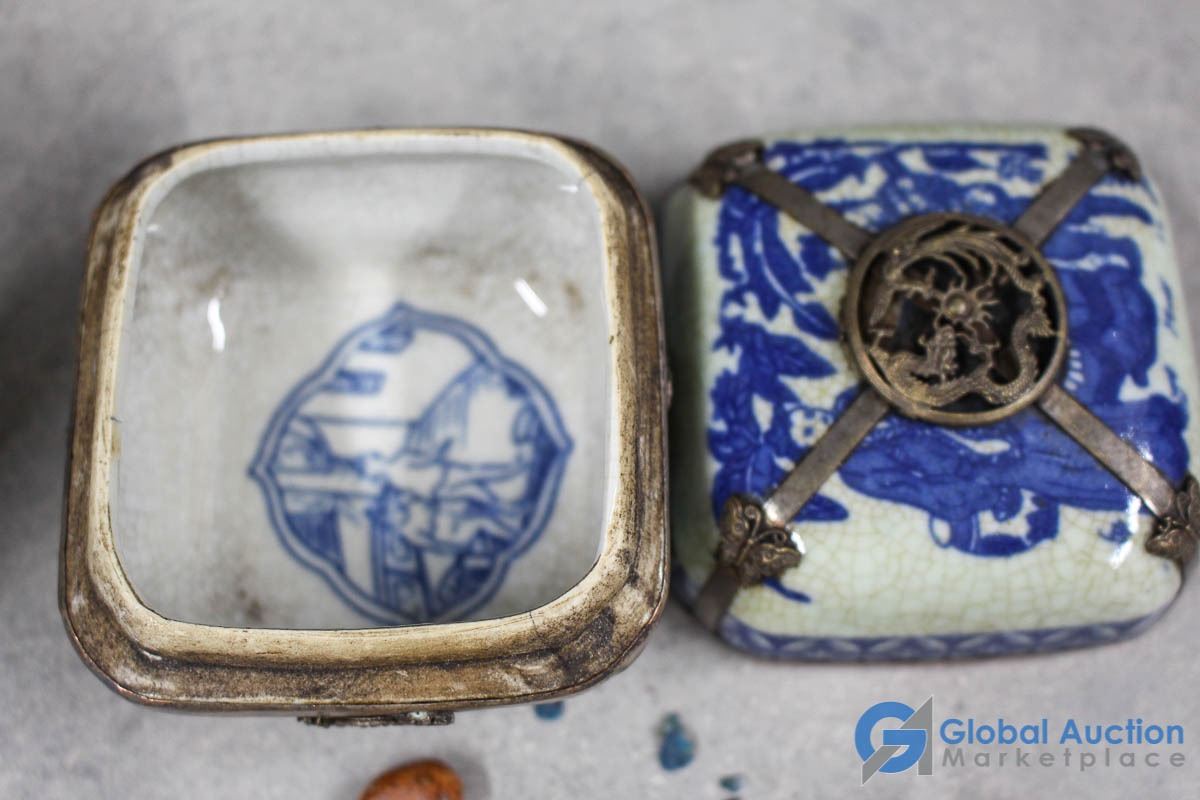 Ornate Small Teapot, Dishes & Rocks