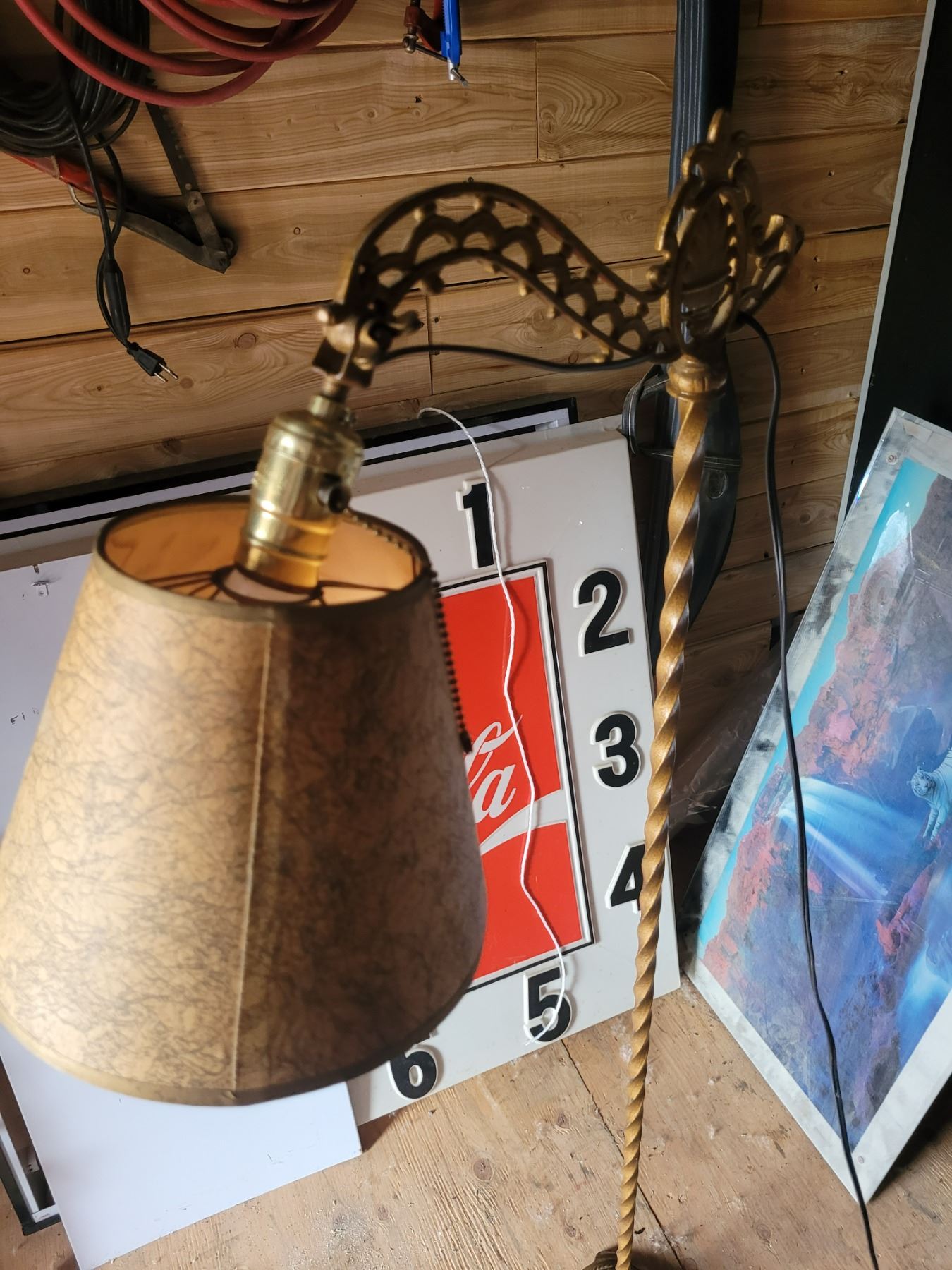 Ornate bridge / floor lamp original shade, has been rewired - tested, working