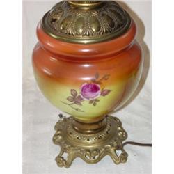 Ornate floral decorated Gone with the Wind table lamp. Measures 21 1/2" tall.