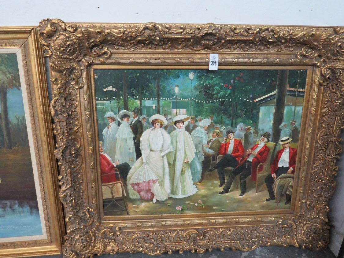 Ornately Framed Oil On Canvas Party Scene - 40 X 48
