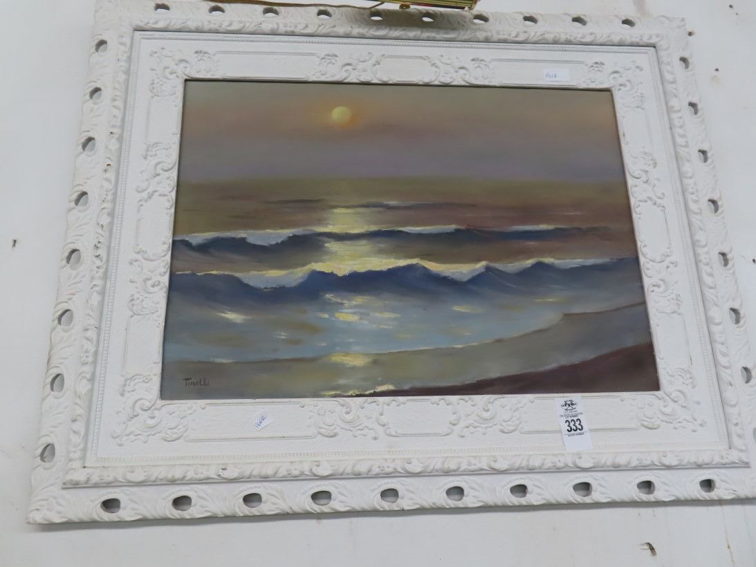 Ornately Framed Oil On Canvas Sea Scape Signed Trorely