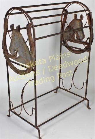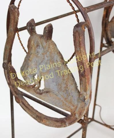 with cutour iron horse head plaques on each end, 37" tall. Est. 100-200