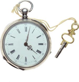 Orologi. Orologio da tasca a chiavetta con cassa incisa in argento, funzionante. mm. 44.00 Chiavetta originale.