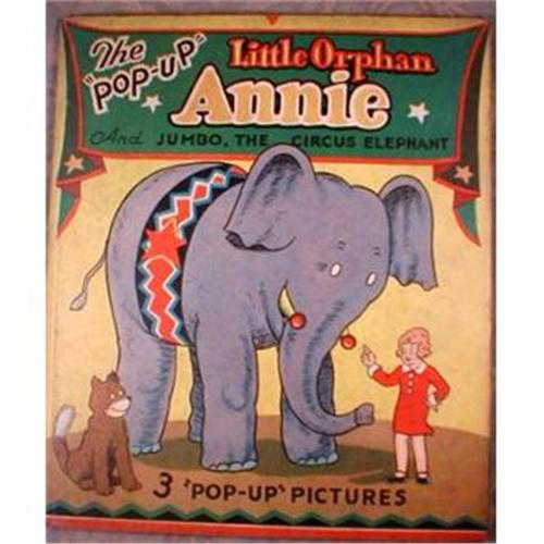 Great vintage pop - up book: The Pop-Up Little Orphan Annie and Jumbo the Circus Elephant.<p>A copy of this book is included in the Brenda Forman Collection at the University of Virginia. There are three double-page pop-ups.