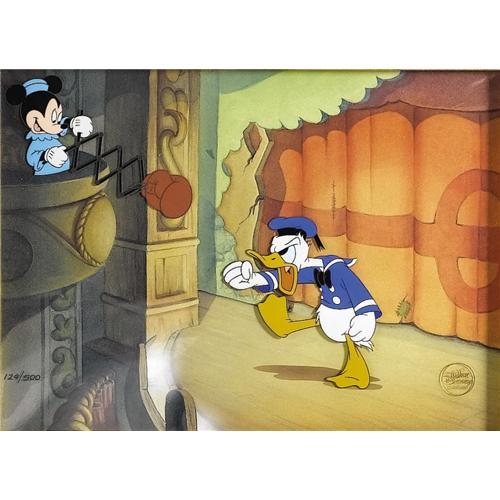 Donald Duck attempts to sing "Mary Had a Little Lamb," while an orphan prepares to punch him in the beak with a retractable boxing glove, in this limited edition hand-painted cel. Beautifully matted and framed with an image area measuring 10" x 7.5". In Excellent condition. Includes a certificate of authenticity.<BR><BR><b>Shipping:</b> Framed (<a target="_blank" href="http://www.heritageauctions.com/common/shipping.php">view shipping information</a>)