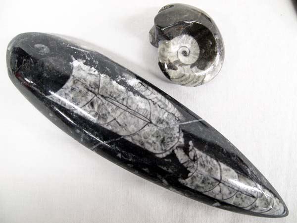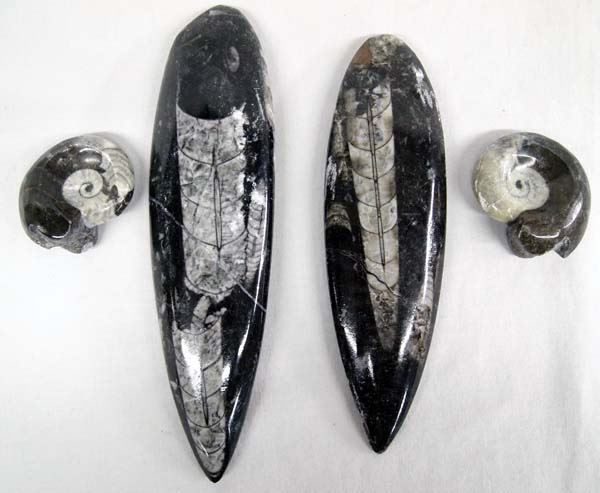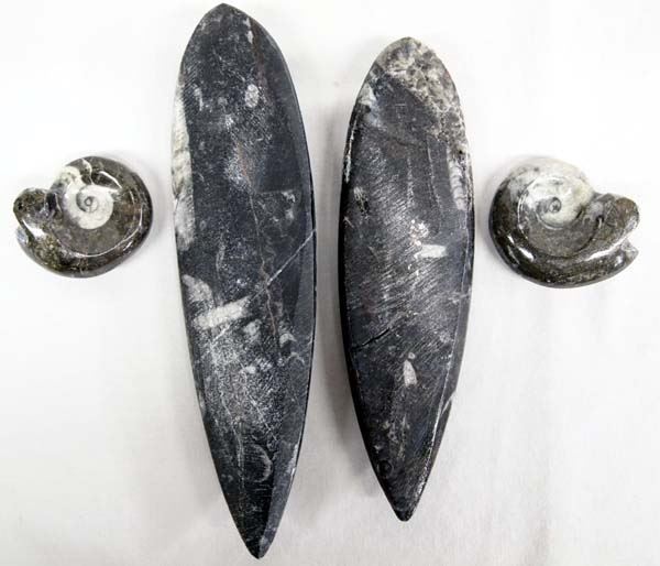 Orthoceras and Ammonite Fossil Specimens, largest measures 7''L