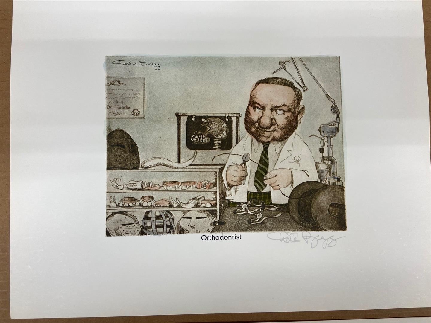 This is a hand-colored MIXED MEDIA litho, hand signed by famed satirist Charles Bragg. It measures 14.5 x 11.5 ".