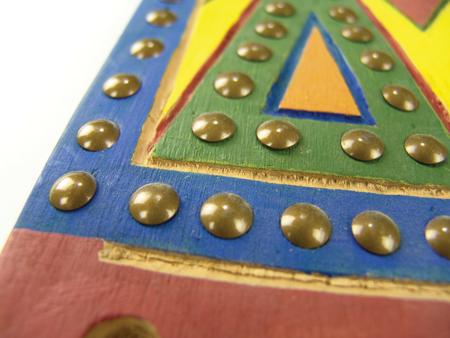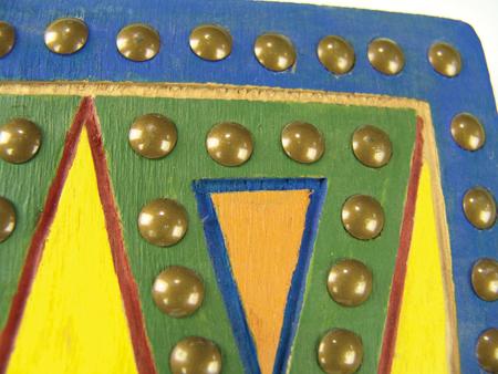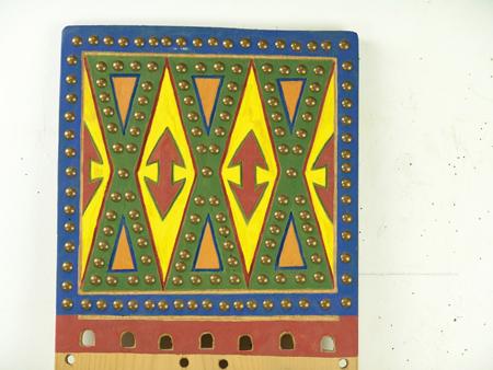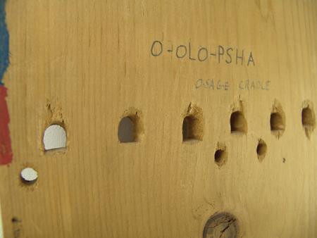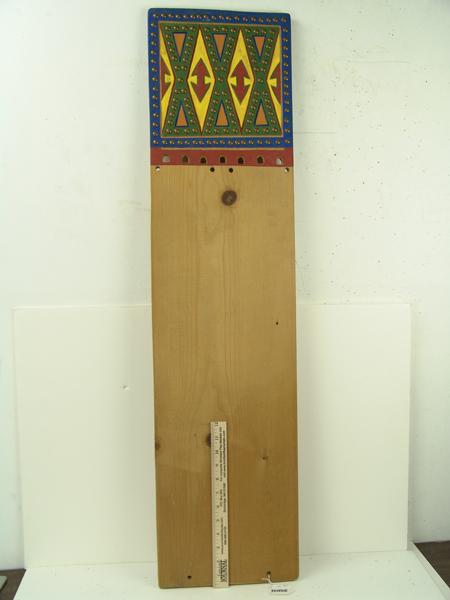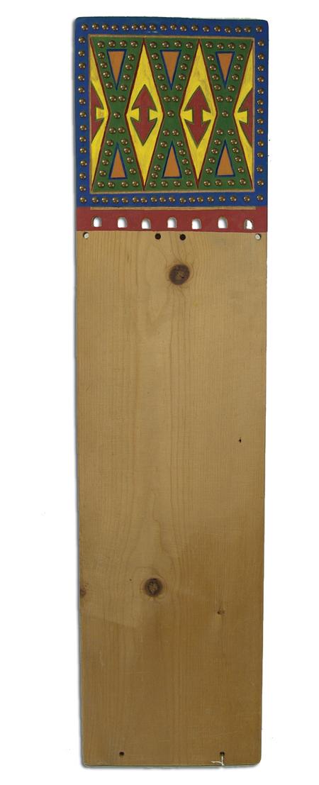 Circa 1980s, Classic hand carved and painted pine backboard for a traditional Southern Plains cradleboard. Excellent condition. 41-1/2" x 10" From the Johnson Collection.