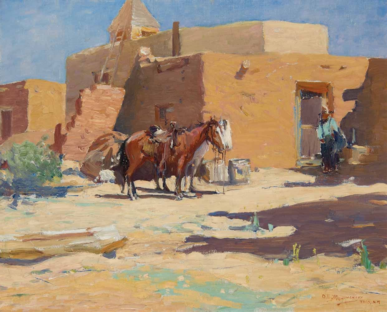 Oscar Berninghaus 1874-1952 Signed lower right, Taos, NM 16 x 20 inches. Shipping: 23x27. Oil on canvas