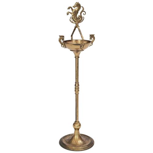 Oscar Boch ashtray, floor form in brass with dragon motif, signed,10in.dia.x 38in.h,very good condition