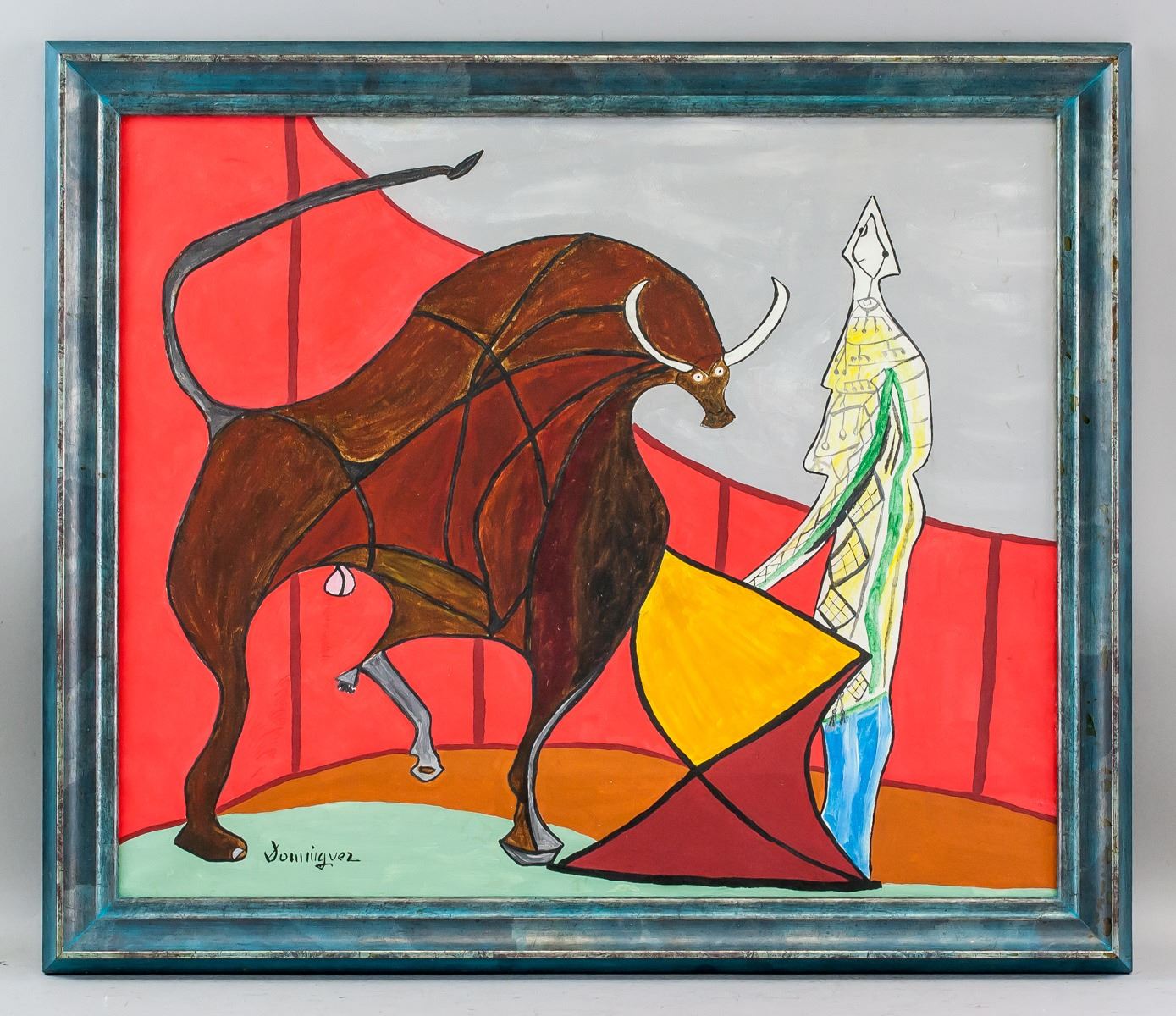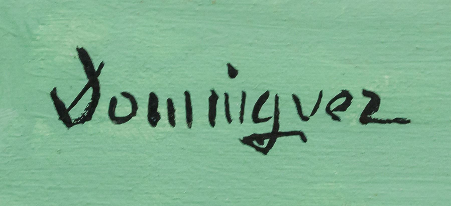Oil on canvas, framed. Featuring a cow and figure. Signed Dominguez on the lower left corner. Attributed to Oscar Dominguez (1906-1957, Spanish). 54 x 45 cm (21.2 x 17.6 inches). PROVENANCE: Private European estate.