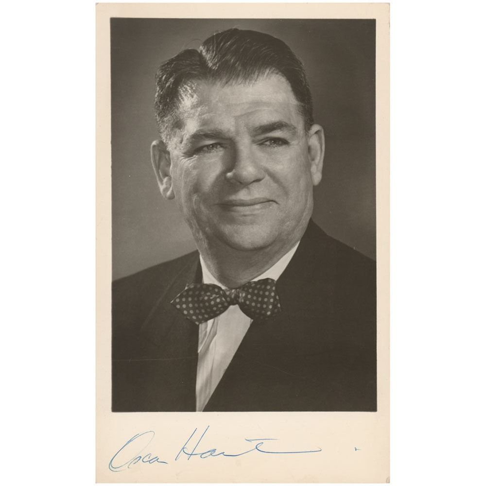 Vintage matte-finish 5 x 8 photo of the award-winning lyricist, signed in the lower border in blue ballpoint by Oscar Hammerstein. In very fine condition.