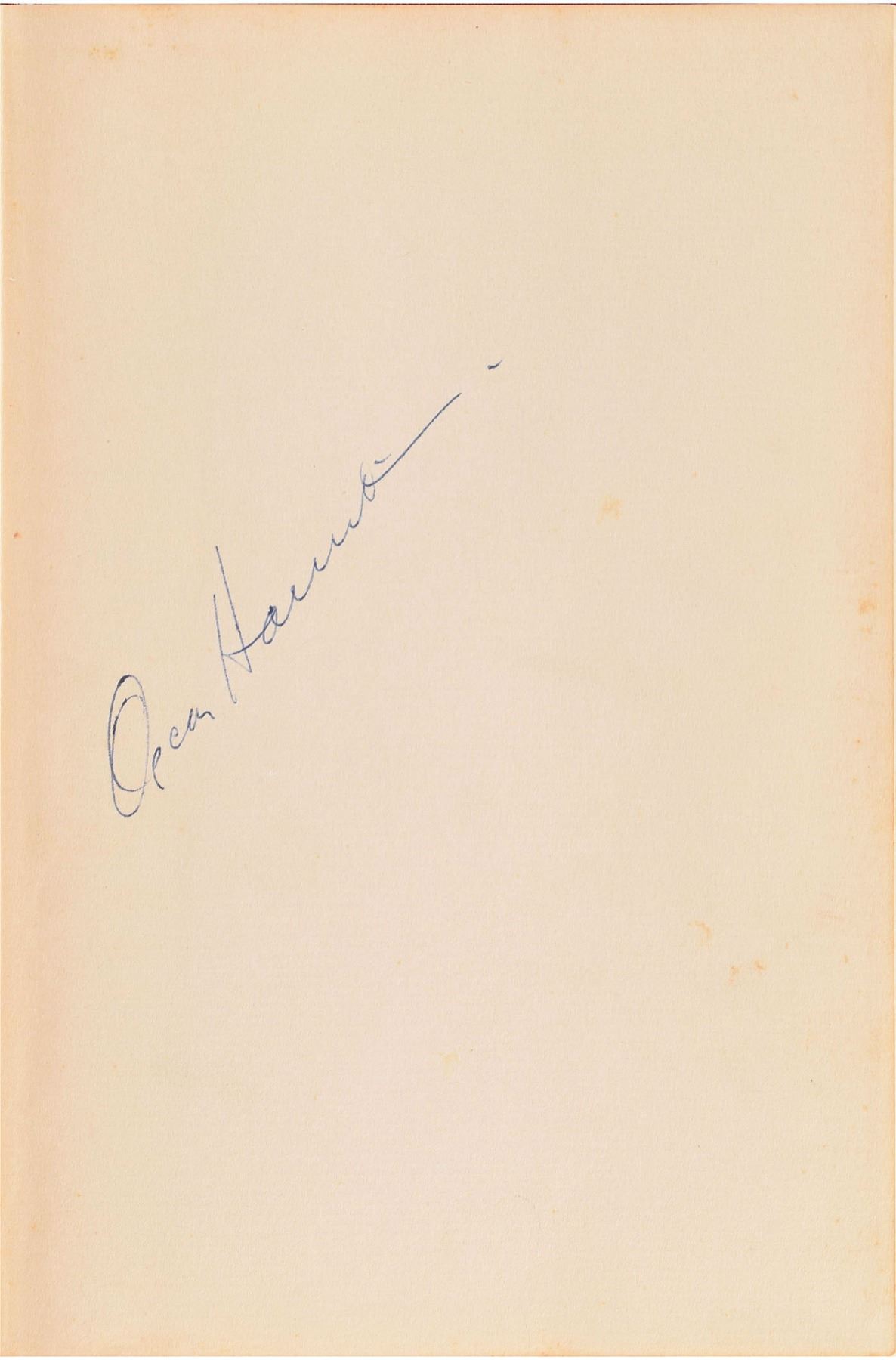 Signed book: Lyrics. First edition, first printing. NY: Simon and Schuster, 1949. Hardcover, 5.5 x 8.5, 215 pages. Signed on the first free end page in blue ballpoint by Hammerstein. In very good to fine condition, with an ownership signature on the following page, and heavy sunning to the spine.
