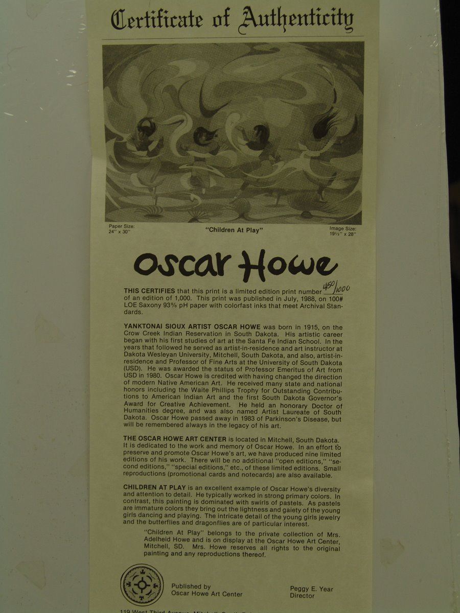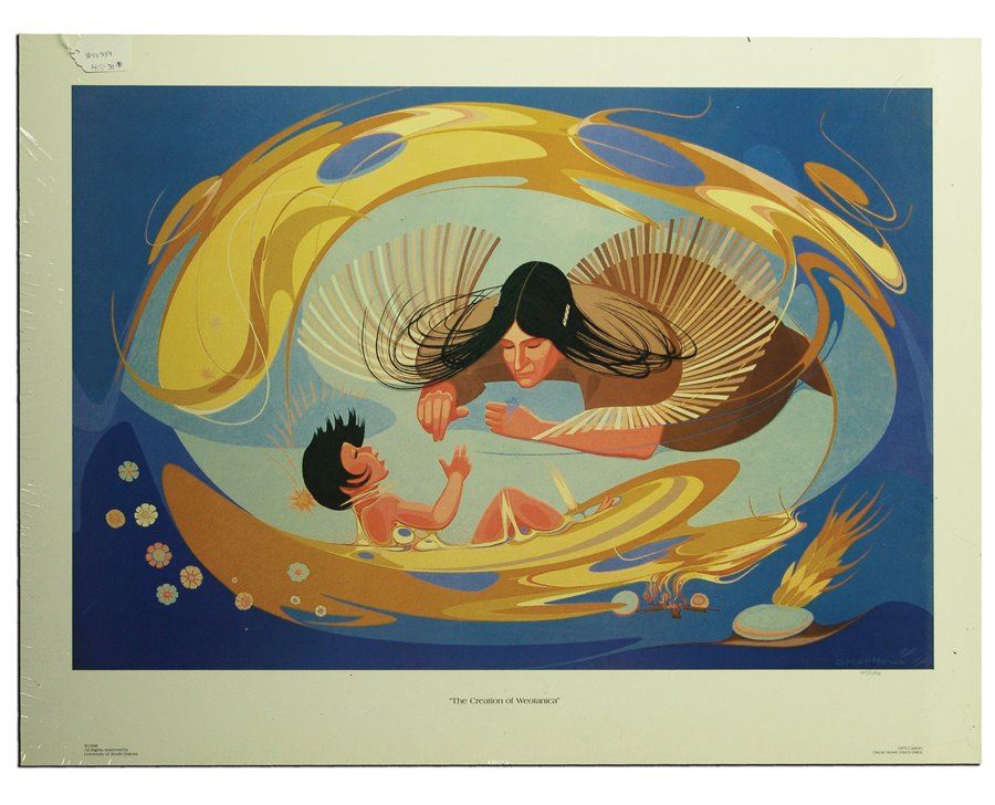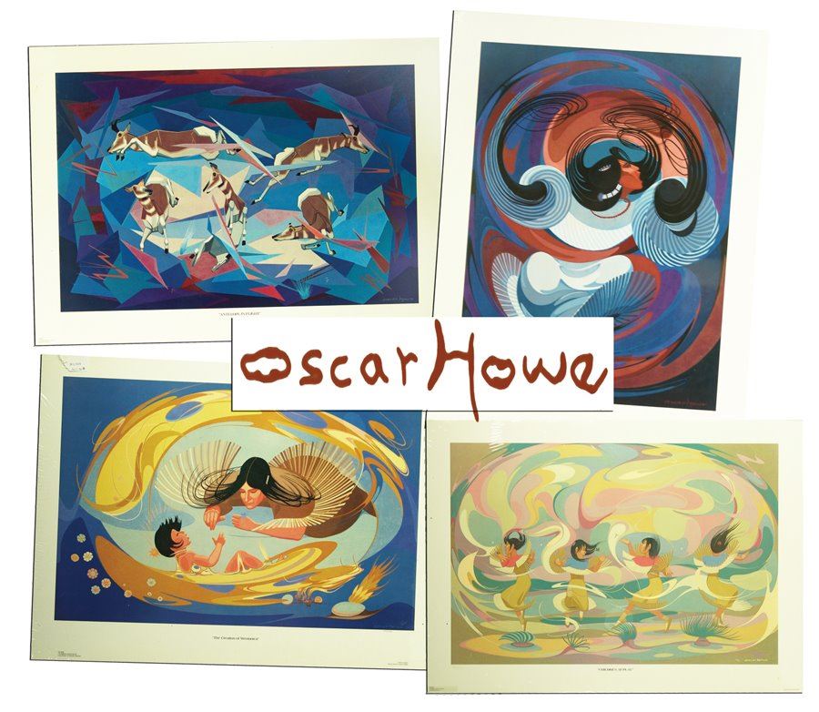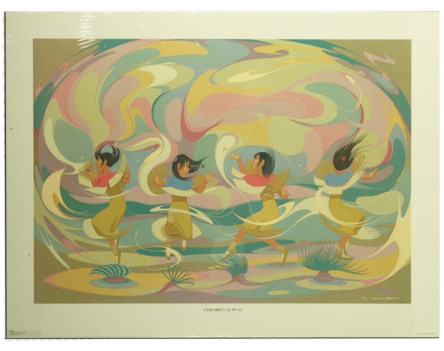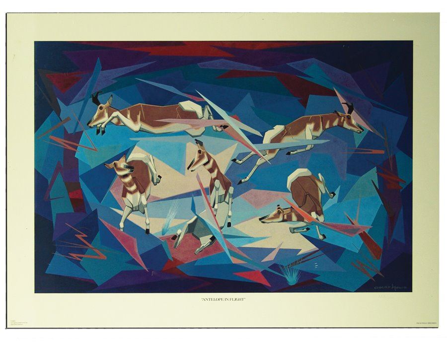Group of four limited edition lithographs including "Women Scalp Dancer" (#395/1000,) "Children at Play" (#450/1000,) "Antelope in Flight" (#229/1000,) and "The Creaton of Weotanica" (#107/1000.) Very good condition,,Ca. 1970s-1980s,Largest 23" x 31"