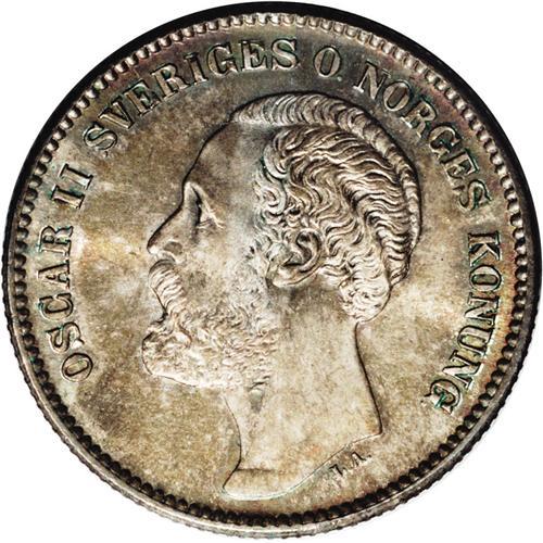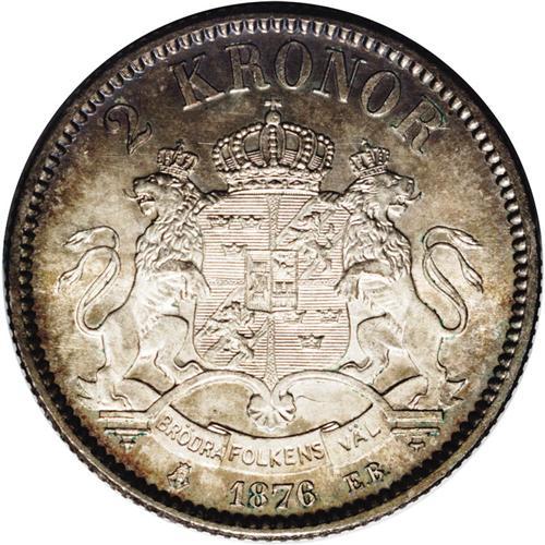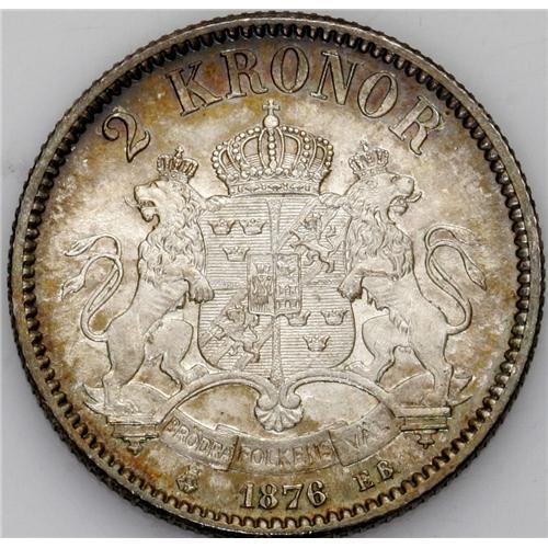 Oscar II 2 Kronor 1876-EB, KM742, MS64 NGC, deep and co Oscar II 2 Kronor 1876-EB,