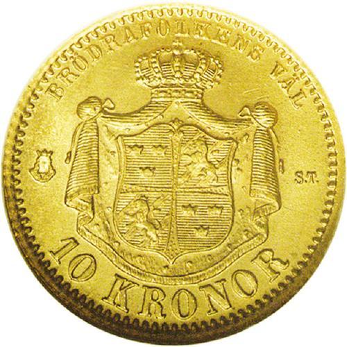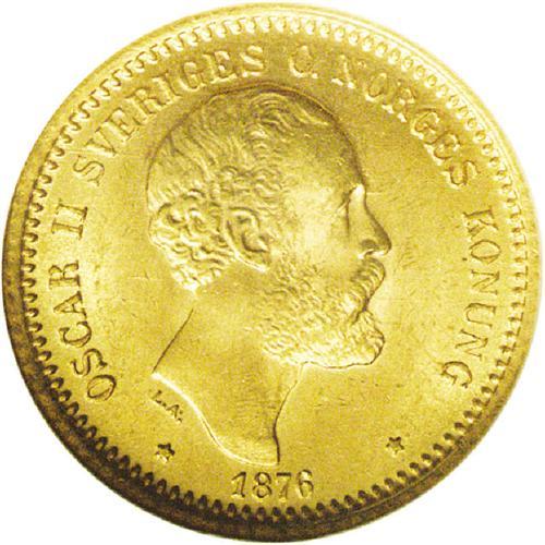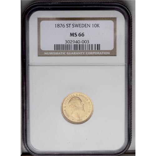 Oscar II gold 10 Kronor 1876 ST, KM732, Fr-94, MS66 NGC Oscar II gold 10 Kronor 1876 ST,