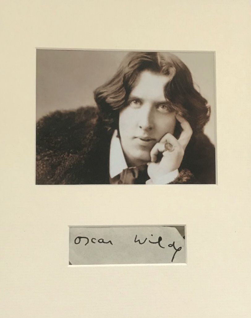 No name is more inextricably bound to the aesthetic movement of the 1880s and 1890s in England than that of Oscar Wilde. A cutting signed by Oscar Wilde. Professionally mounted and framed in a wooden and an antique style moulding frame. Supplied with coa.