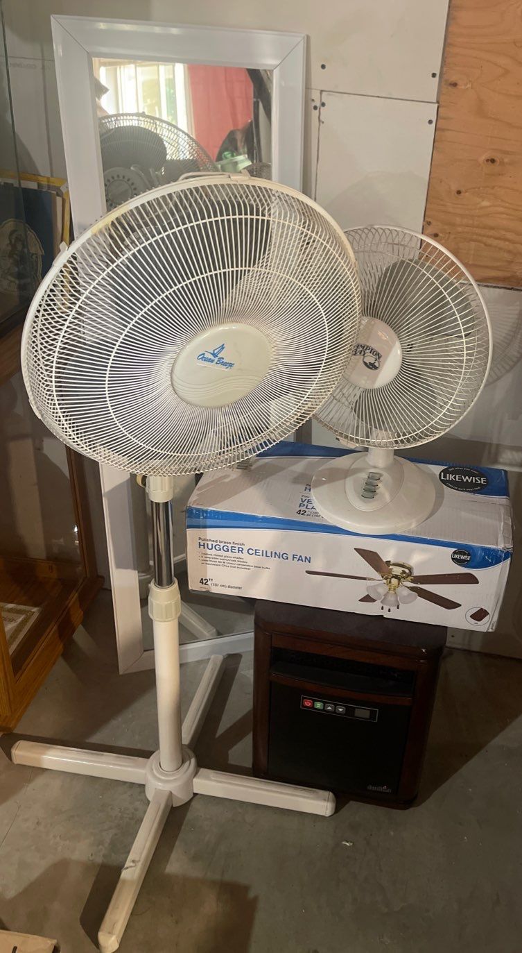 Oscillating Floor Fans w/ New Ceiling Fan & Duraflame Indoor Heater Twin Star Int.