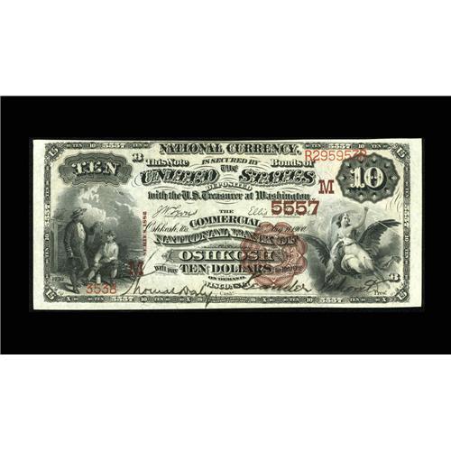 <B>Oshkosh, WI</B></I> - $10 1882 Brown Back Fr. 490 <B>The Commercial NB</B></I> Ch. # (M)5557<BR>A lovely Brown Back with a minimum of circulation and a maximum of eye appeal. The colors, signatures, and overall appearance suggest an even higher grade than our conservative <B>Extremely Fine-About Uncirculated</B></I> assessment.